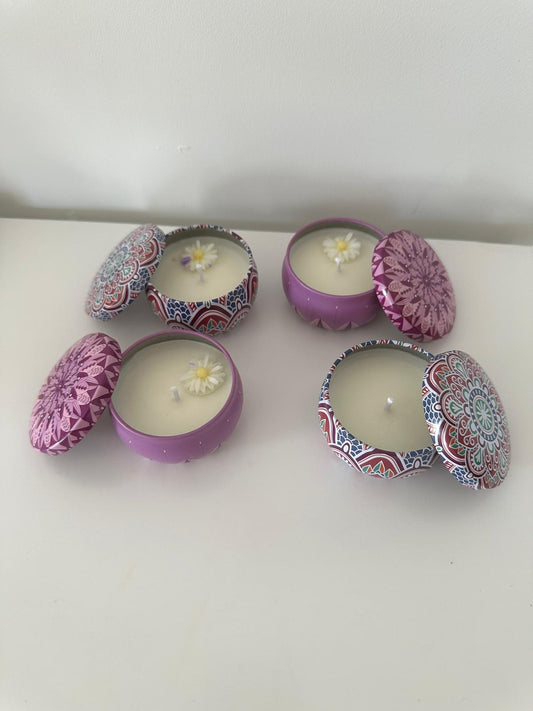 Amber Noir Soy Candle with Metal Tin Jar Random Design