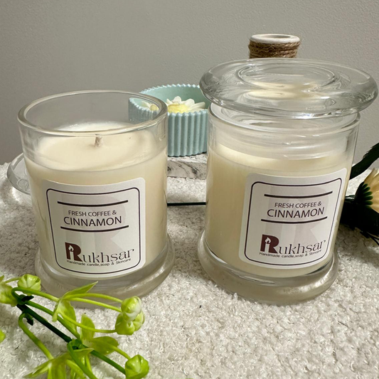 Experience the pure essence of tranquility with our Soy Scented Candles at Rukhsar Handmade. Crafted from 100% natural soy wax, these candles burn cleaner and longer, filling your space with delightful, lasting fragrances. Each candle is thoughtfully infused with exquisite scents designed to elevate your mood and create a serene ambiance. Perfect for any room or occasion, Rukhsar Handmade's soy scented candles offer an eco-friendly and luxurious way to enhance your home’s atmosphere with the warmth and glow of natural beauty.