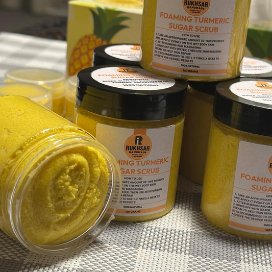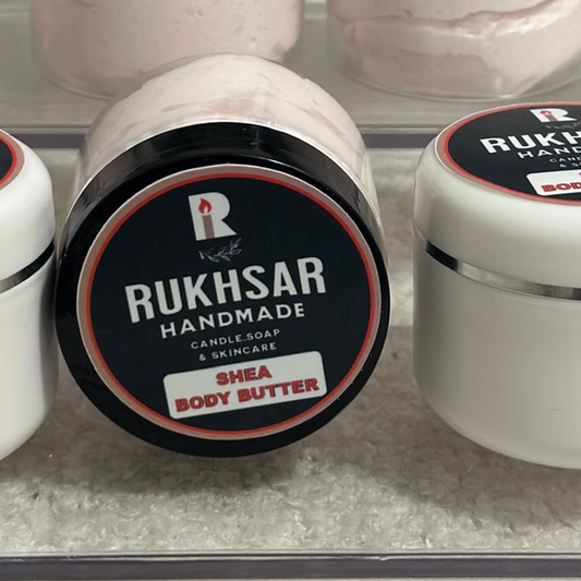 Indulge in the luxurious world of skincare with Rukhsar's exquisite collection. Our handcrafted soaps, enriched with natural ingredients, cleanse and nourish your skin, leaving it soft and radiant. Dive into pampering bliss with our velvety body butters, formulated to moisturize and replenish dry skin, while our invigorating scrubs gently exfoliate, revealing a smooth and glowing complexion. Elevate your self-care routine with our sumptuous body oils, offering hydration and a delicate fragrance. Experience the ultimate in skincare luxury with Rukhsar.